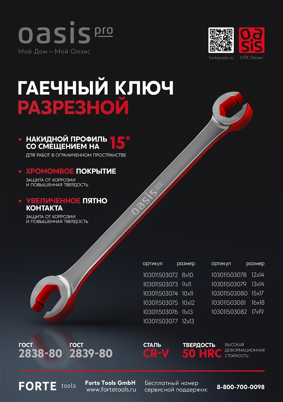 Разрезной гаечный ключ Oasis Pro – это специализированный вид гаечного ключа, который используется для работы с гидравлическими и пневматическими системами, а также с трубопроводами и тормозными магистралями. Инструмент часто используется при работе с тормозными системами автомобилей, а также с другими гидравлическими или пневматическими системами, где обычные накидные ключи неприменимы из-за наличия трубки или шланга.