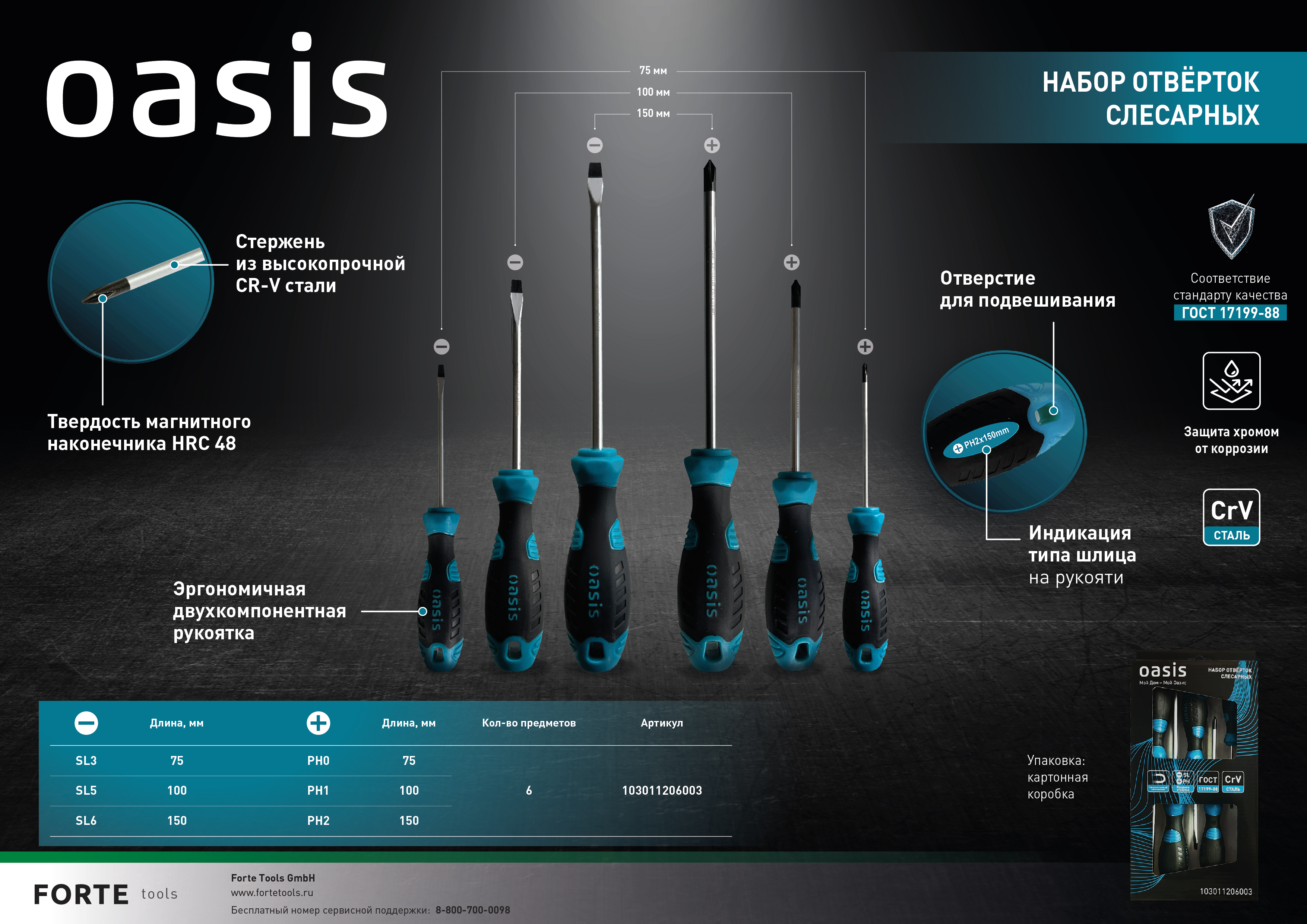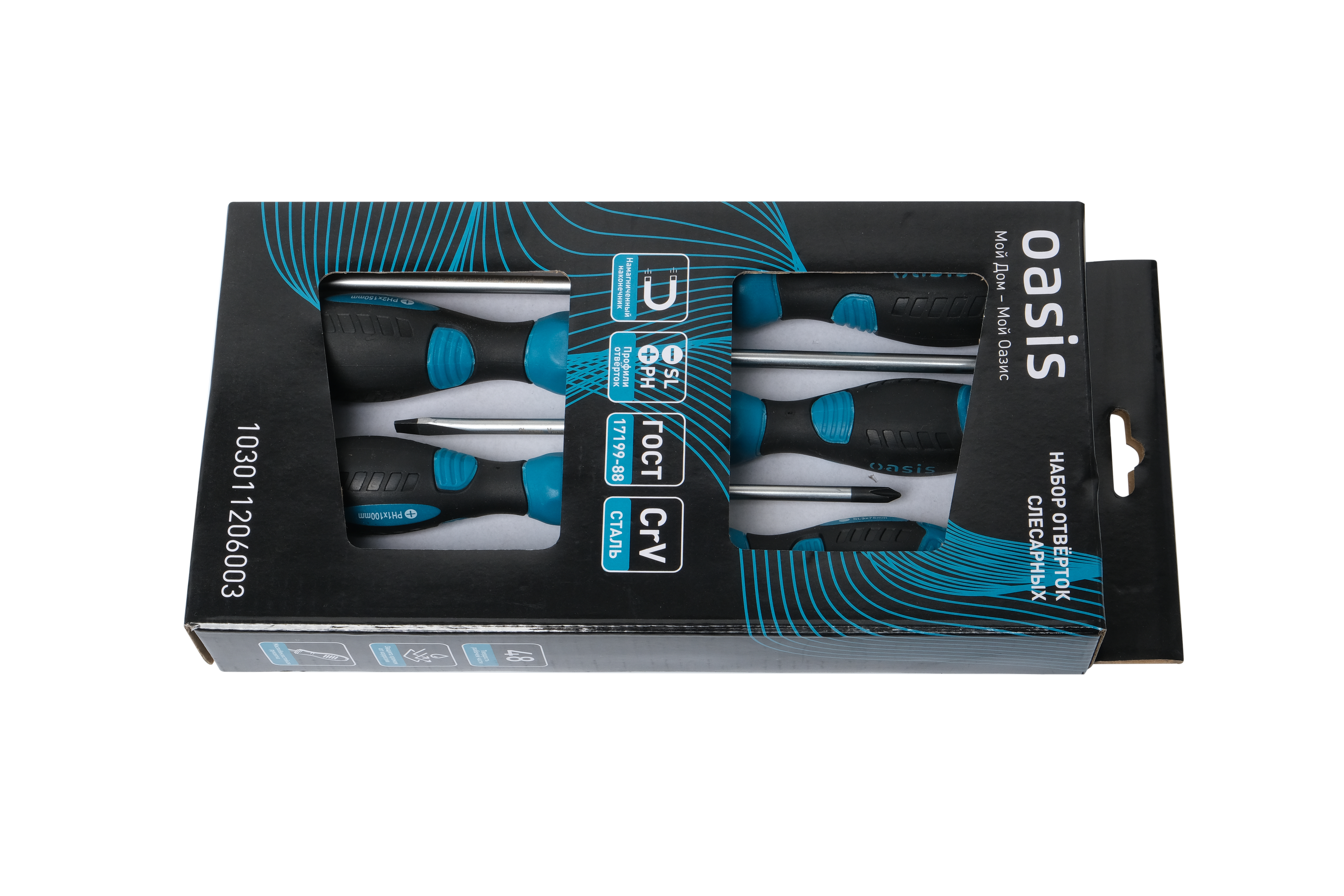 Набор отвёрток слесарных Oasis CR-V (6 шт: SL3,5,6/PH0,1,2) 103011206003