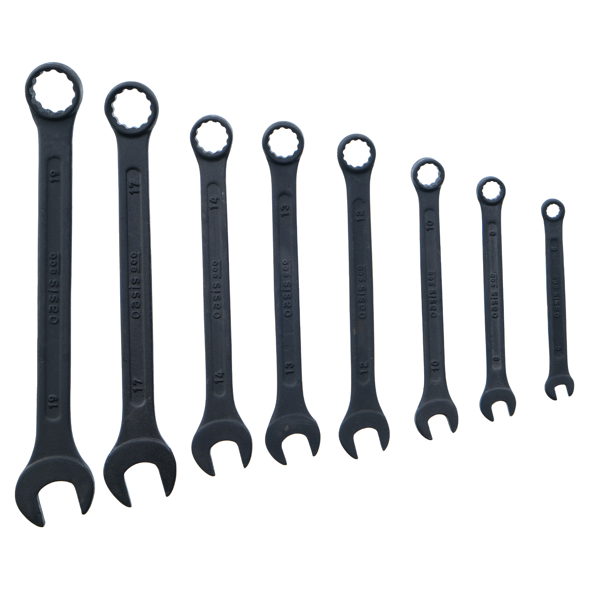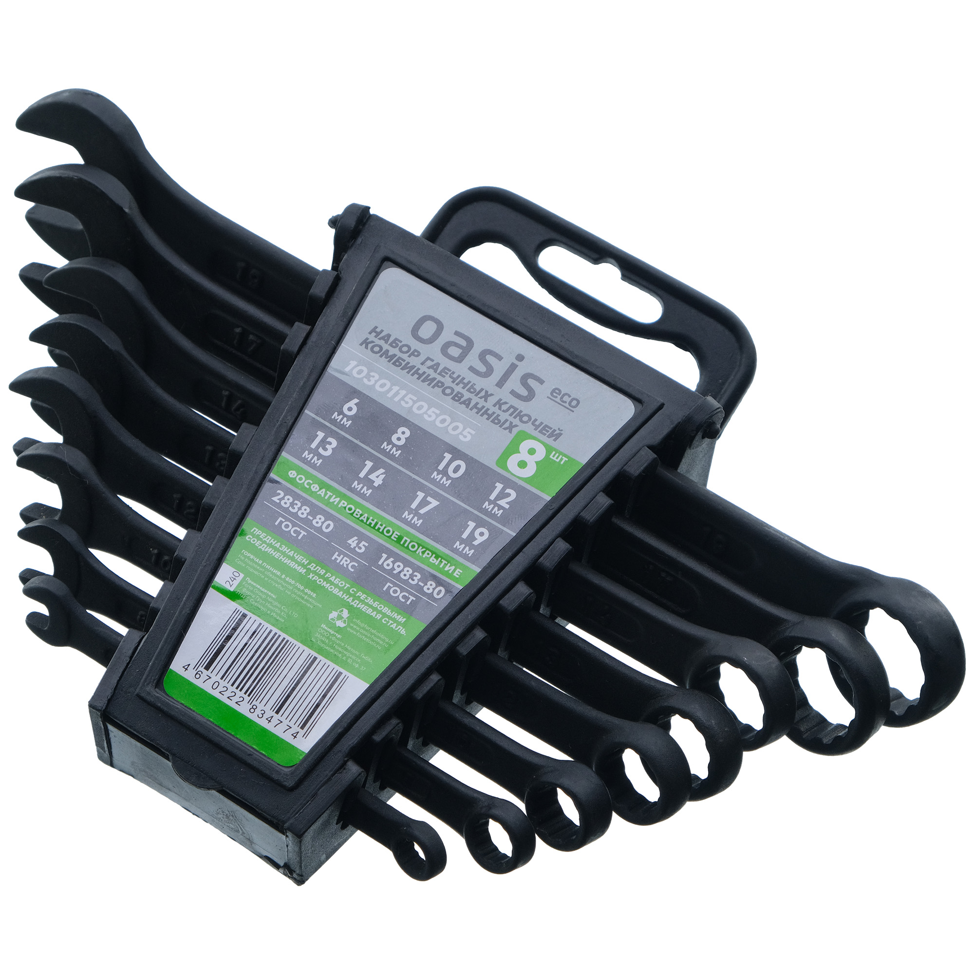 Комбинированный гаечный ключ Oasis Eco – это универсальный инструмент, который пригодится как профессионалам, так и любителям. Он подходит для сборки мебели, ремонта автомобилей, выполнения сантехнических и монтажных работ. Комбинированная конструкция объединяет два профиля: открытый зев для быстрой работы и накидной – для максимального контакта с гранями гайки без проскальзывания и повреждения деталей.