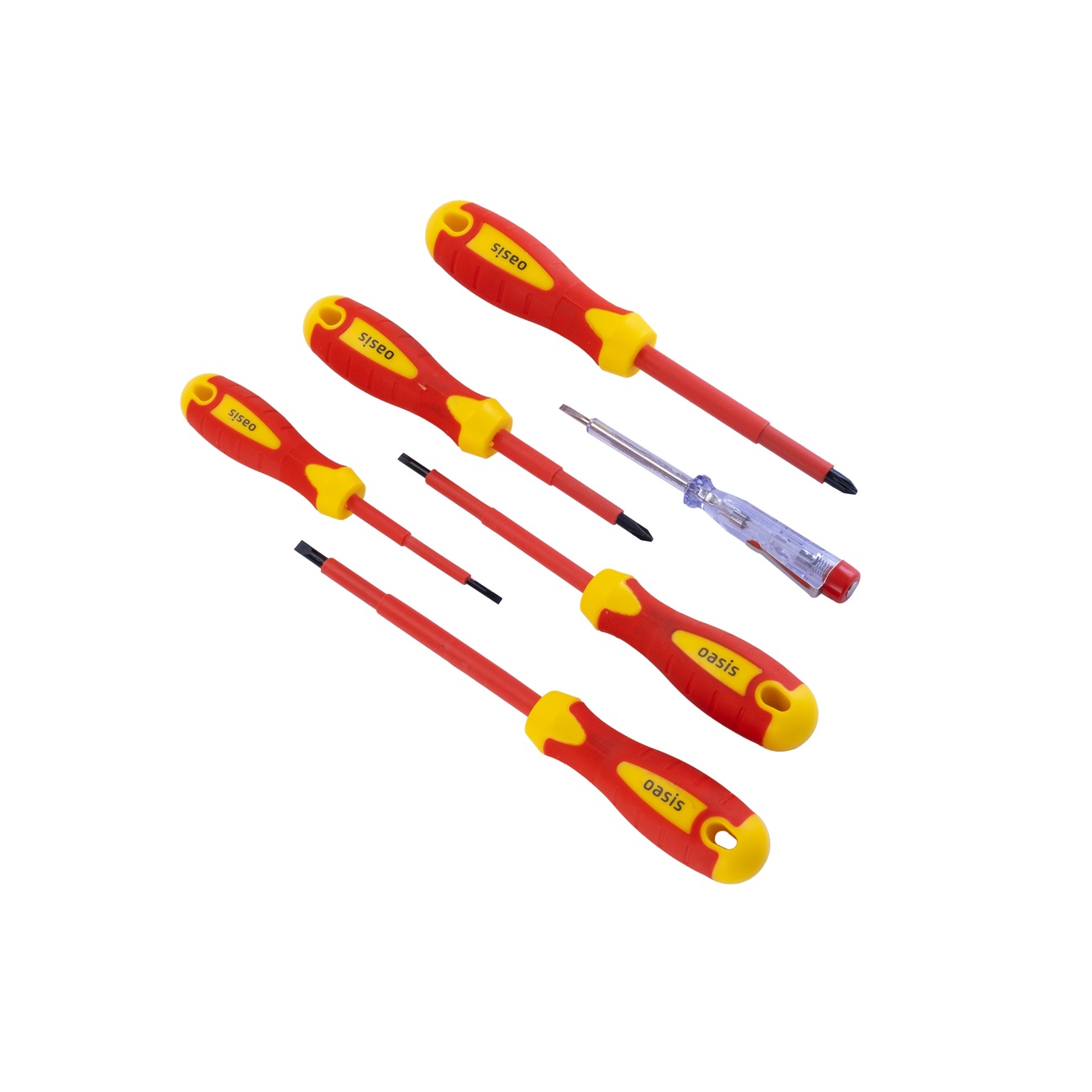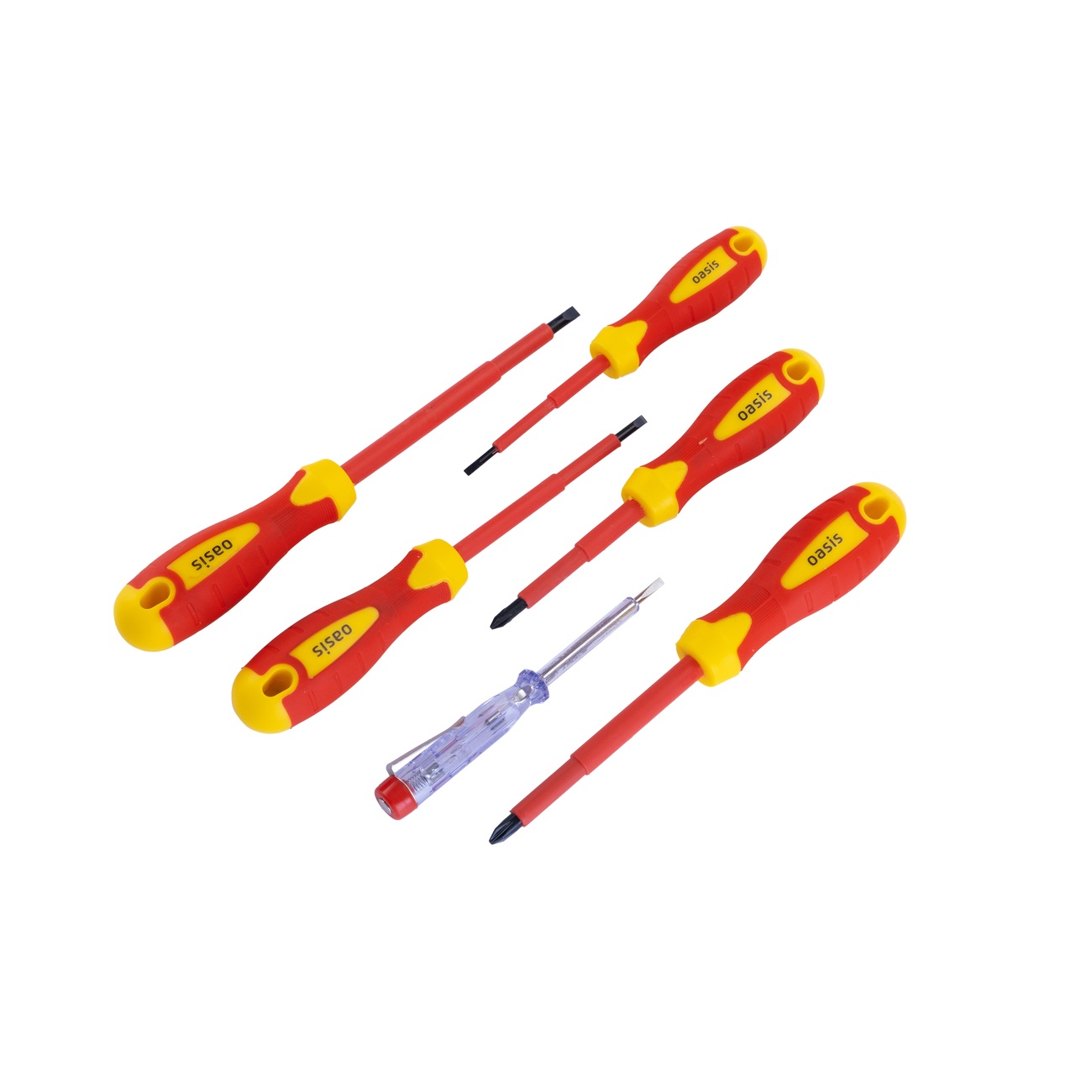 Набор отверток диэлектрических предназначен для различных электротехнических работ под напряжением до 1000В. Двухкомпонентная рукоятка не скользит во время работы, а магнитный наконечник позволяет надежно удерживать крепеж. Прочность изделия достигается за счет хром-молибденовой стали (CrMo). Инструменты полностью соответствуют требованиям технического регламента Таможенного союза ТР ТС 010/2011 "О безопасности машин и оборудования".