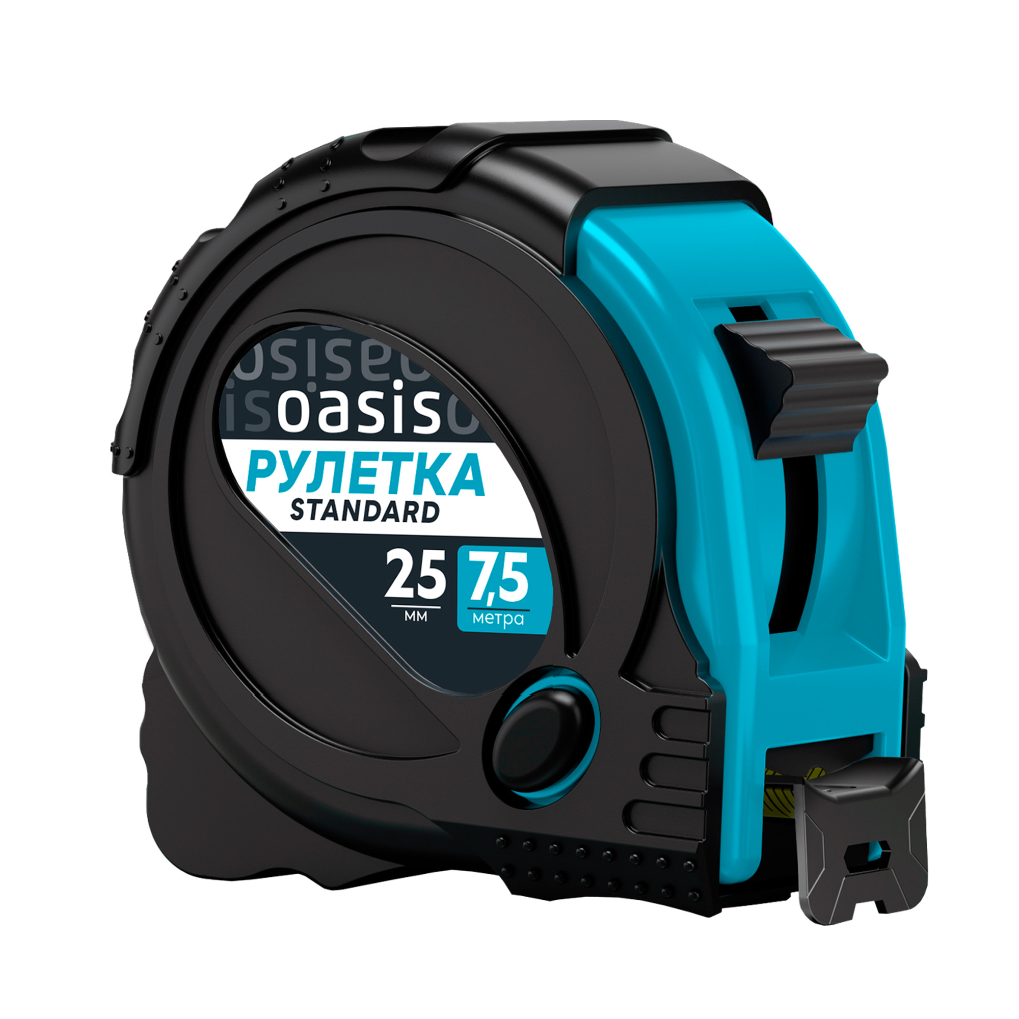 Рулетка в обрезиненном противоударном корпусе. Оснащена тремя механизмами фиксации ленты, магнитным зацепом для металла и запястным шнурком.
