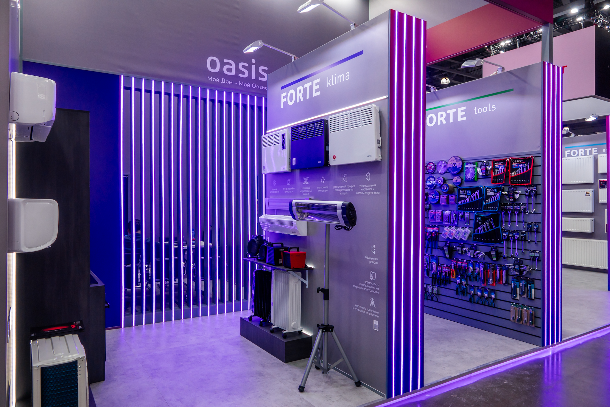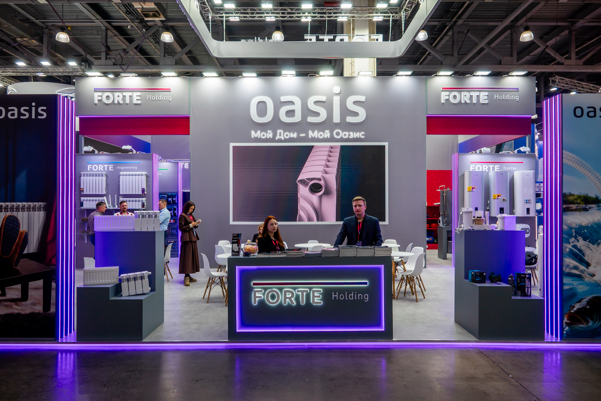 На стенде компании были представлены как новинки ассортимента, так и самые популярные модели нашего ассортимента. В экспозиции стенда ведущую роль заняли радиаторы отопления, широкая линейка насосного и водонагревательного оборудования, смесители, а также кухонная и климатическая техника, ручной, расходный и электроинструмент. Гости выставки лично смогли оценить все преимущества продукции бренда Oasis. Наши специалисты ответили на все вопросы посетителей, предоставляя квалифицированную консультацию.