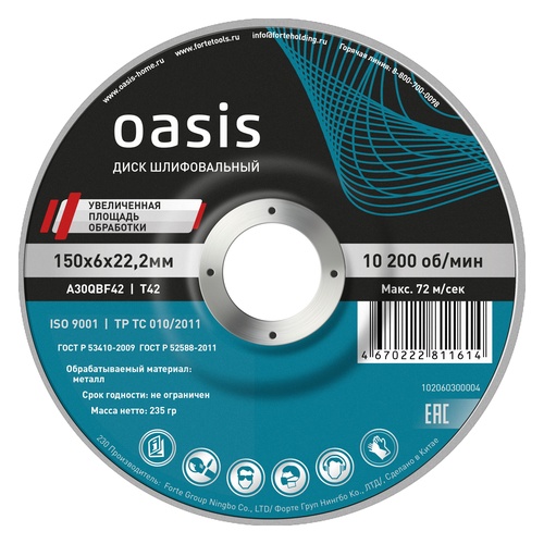 • Диск шлифовальный 150х6х22,2 мм (P30) Oasis 102060300004
